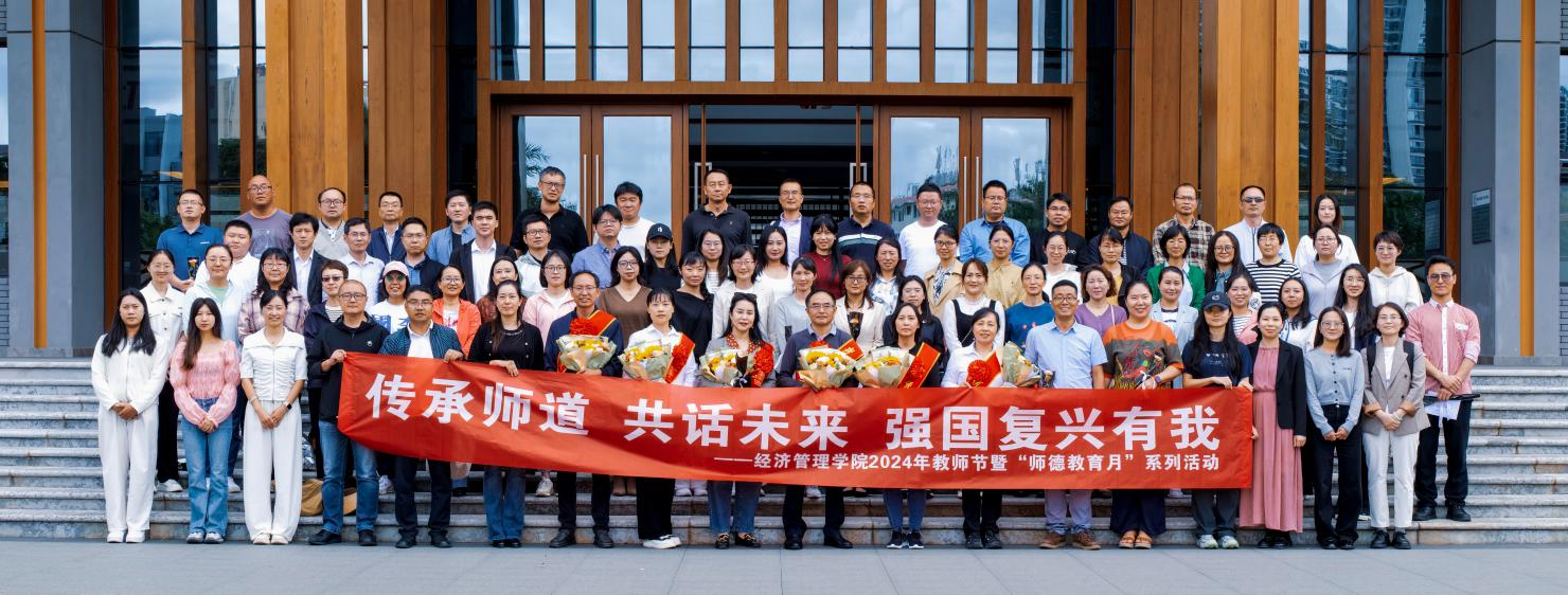 9月9日,在第40个教师节来临之际,经济管理学院召开教师节座谈会暨师德师风教育大会。大会以“传承师道 共话未来 强国复兴有我”为主题,学院全体教职工齐聚一堂,共庆教师节。