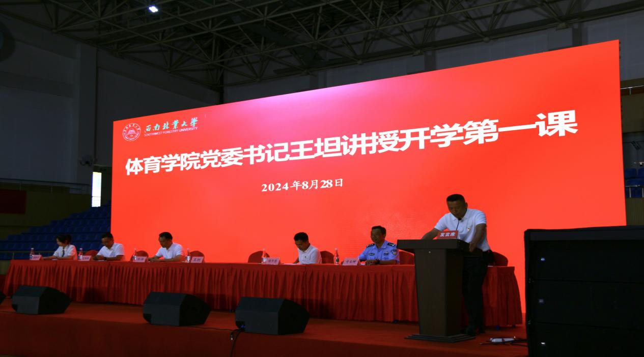 8月28日,体育学院举行2024级新生入学教育暨开学第一课。学院党委书记王坦,副院长(主持工作)陈涛,体育系系主任宋晶涛、辅导员、新生班主任以及2024级全体新生参会。活动由学院党委副书记锁中原主持。