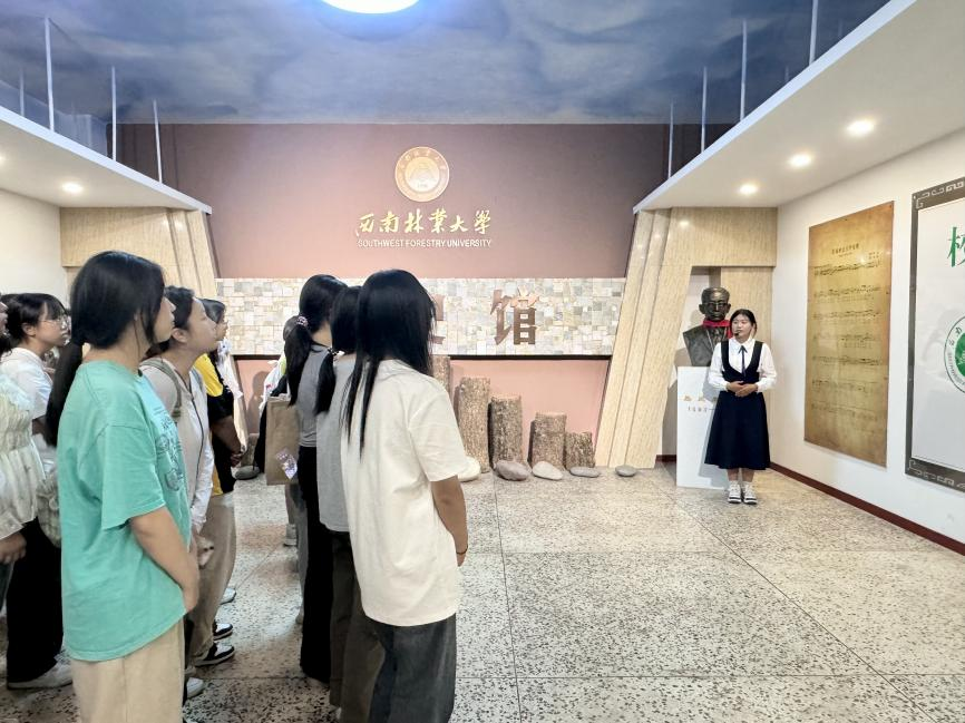 在校史馆,工作人员带领新生参观七个展厅,了解学校校歌、校徽、校训和西林精神,回顾学校历史沿革、详细介绍学校发展概况、教育国际化、科学研究、校园文化建设、校园规划等情况。
