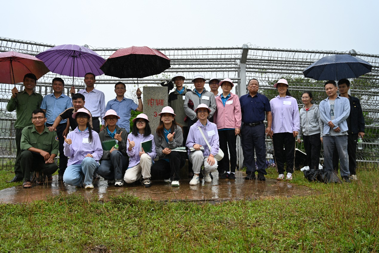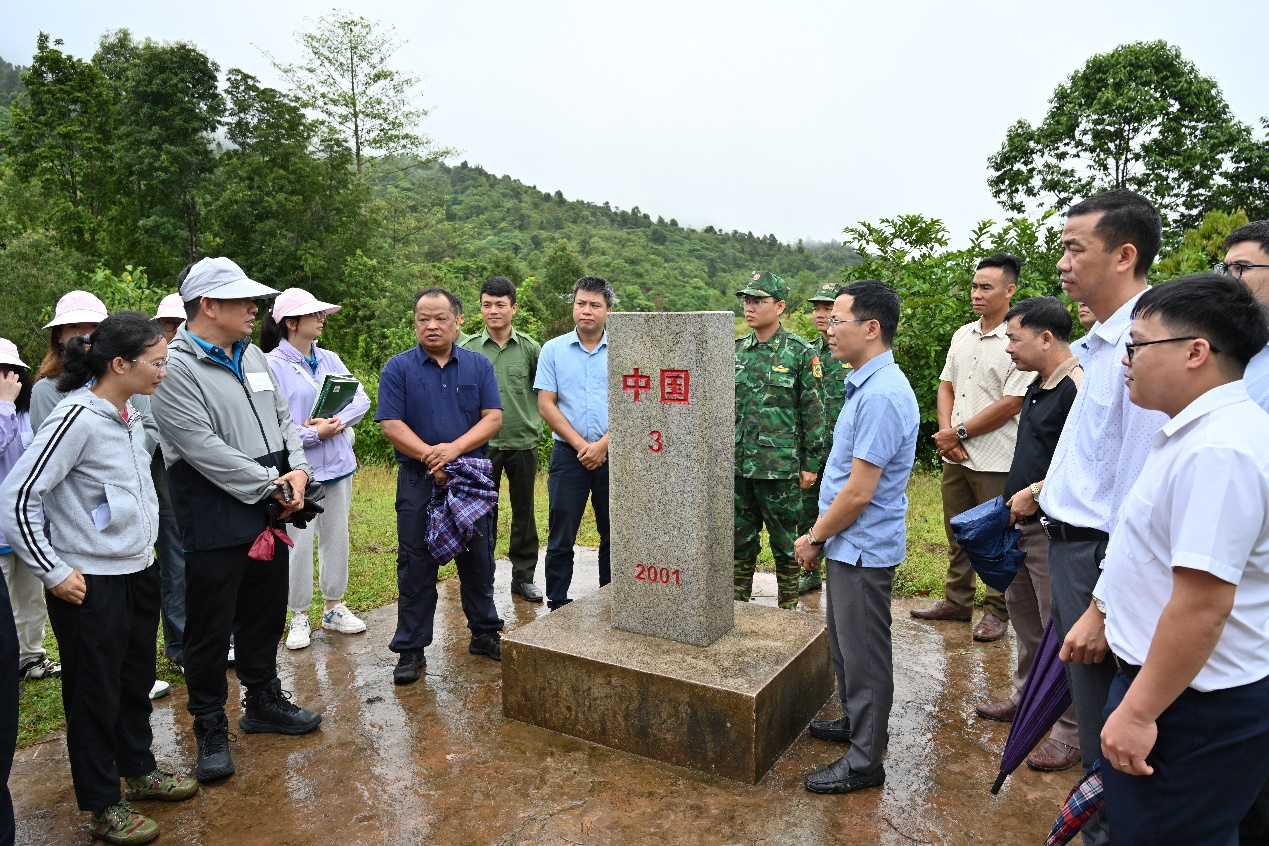 为推进普洱市中老越跨境生态廊道区域生物多样性保护示范项目实施,探索建立中越跨境生物多样性保护多边联合巡护机制,7月31日,米兰milan官方网站林学院(亚太林学院)李茂彪副教授一行与普洱市生态环境科学研究所、越南奠边省勐念县政府办公室、奠边省资源和环境厅在江城县中越边境龙富口岸3号界碑区域开展了中越跨境区域生物多样性保护联合巡护交流活动。普洱市生态环境科学研究所、江城县政府外事办公室、普洱市生态环境局江城分局、江城县曲水镇代表以及越南方代表近40人参加。