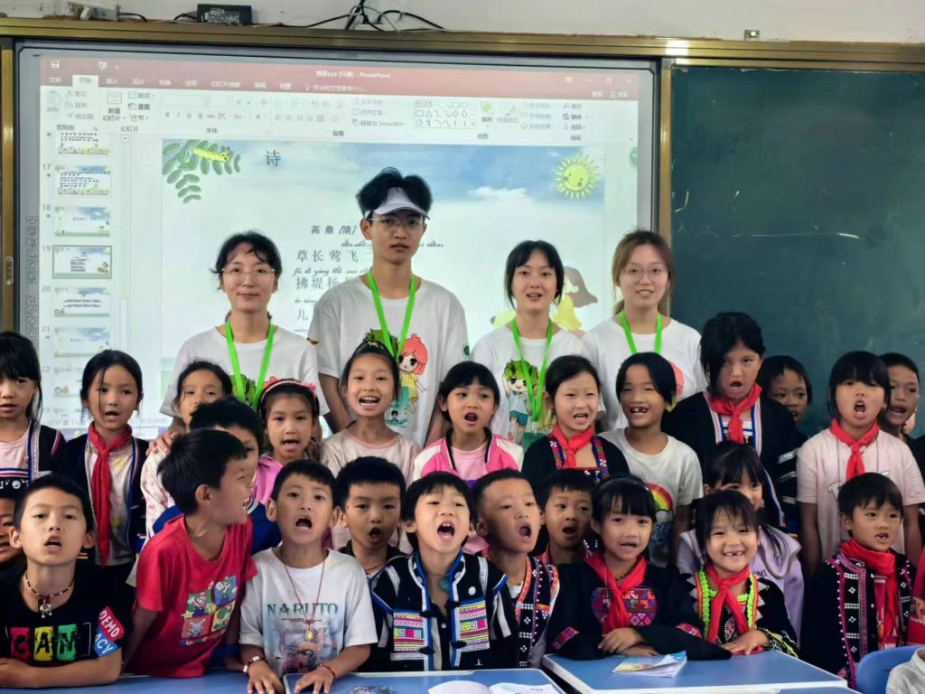为进一步推动乡村语言文化建设,提升群众的普通话水平,7月12日,推普小队踏上了前往勐根茶场社区和酒房村民委员会的征程,开展推广普通话讲座。团队成员精心准备,结合当地少数民族地区特点,搜集整理村民们日常生活用语,提前印制培训材料,反复多次演练,力求把培训讲座做到贴合广大群众实际需求。推普成员发现:“部分年长村民的普通话水平相对较低,在沟通交流中存在一定障碍。”针对这一情况,志愿者耐心讲解,从最基础的拼音开始,逐步引导他们正确发音、规范用词。此外,推普小队还在酒井乡完小,面向小学生开展推普活动。课堂上,团队成员化身语言小精灵,采用充满趣味的绕口令练习、精彩的诗歌朗诵授课。起初,孩子们还略带羞涩,但在热情洋溢的大学生的引导下,他们逐渐放松了自己,勇敢地张开嘴巴,在欢声笑语中纠正了发音,一句句流畅的普通话从稚嫩的孩子们口中说出。