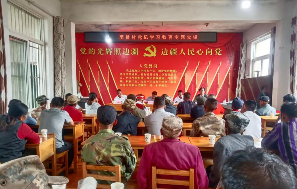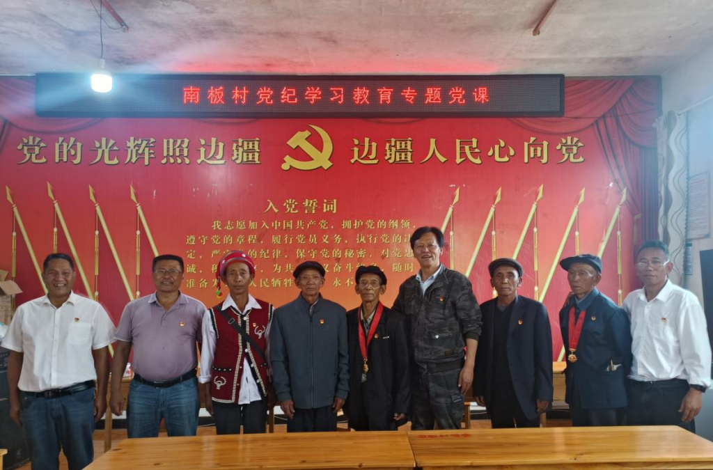 会上,辉朝茂教授为 “光荣在党50年”的老同志颁发纪念章,并领誓重温入党誓词,随后为中共南板村总支委员党员讲授《党的光辉照边疆 边疆人民心向党》党课,感受边疆人民“永远听党话、感党恩、跟党走,建设好美丽家园,维护好民族团结,守护好神圣国土,唱响新时代阿佤人民的幸福之歌”的情怀。