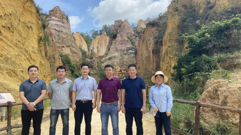 郑绍江一行先后来到马街镇杜旗堡、彩色沙林公园、爨龙颜碑、滇中健康城、三岔河镇、遇见•荷花里等地开展实地考察调研,了解地理位置、自然资源、文化特色以及产业发展情况,为后续校地合作提供详实数据和信息支撑。考察调研期间,双方就深化产教融合、艺术写生(采风)、实践平台搭建、三下乡社会实践等工作开展经验交流。