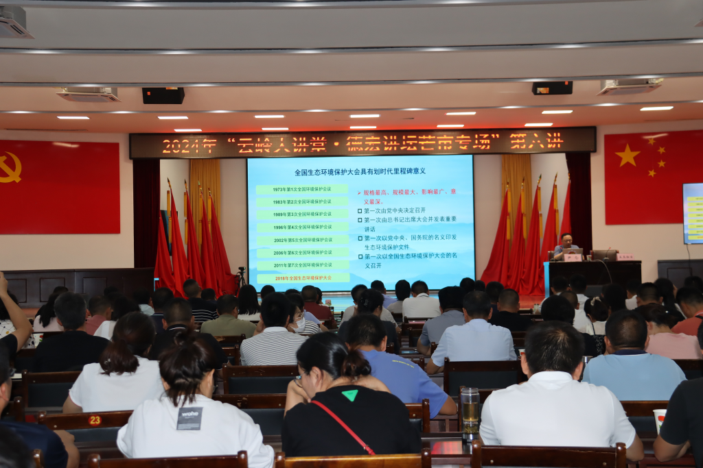 为深入学习贯彻习近平新时代中国特色社会主义思想,6月3日,芒市举办2024年“云岭大讲堂·德宏讲坛”第六讲。本次讲座由芒市四级调研员孟玉相坐主持。