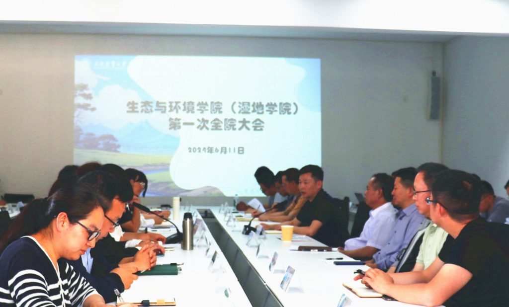 6月11日,生态与环境学院(湿地学院)在工学楼召开第一次全院教职工会议,会议主题为认真学习贯彻习近平新时代中国特色社会主义思想,通过人才强院、干事兴院,以务实的态度、强劲的力度、火热的温度、一流的效度,推动学院高质量发展。