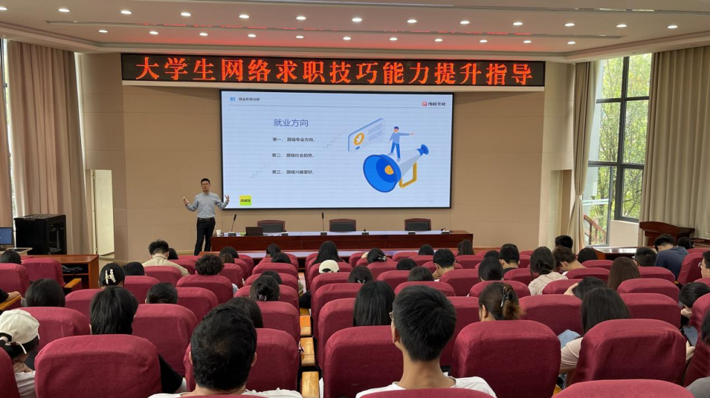 应届生求职网首席职场导师兰军伟为同学们讲解大学生网络求职技巧。兰军伟就当前应届毕业生面临的就业形势、网络求职信息搜索、网络求职安全和风险防范等内容进行详细讲解。并与同学们就跨专业求职和职业规划、网络求职谈薪方法等问题进行交流。