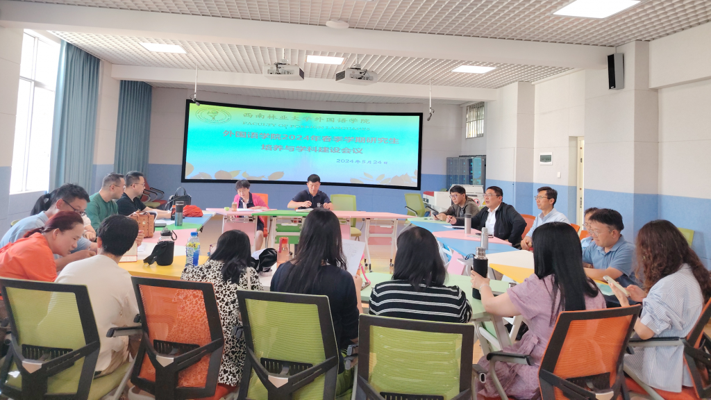 为提升学院教育教学质量和科研水平,5月24日,外国语学院召开2024年春季学期研究生培养与学科建设会议。学院领导班子、教学返聘督导、实验中心主任、研究生导师、研究生任课教师和研究生秘书参加会议。会议由院长何新元主持。