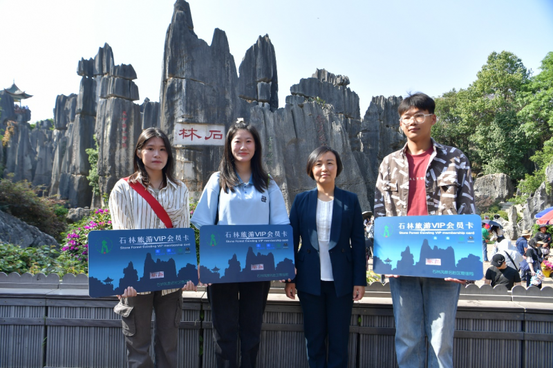 5月2日当天,石林风景区就换成了正确的树牌。小祁、小赵没想到,“给景区纠错”这件事还没结束,景区竟然邀请她们去重游。5月4日一早,石林风景名胜区管理局局长赵晓梅陪着她们游石林,去看了标对树牌的君迁子,打卡了“石监狱”,听取了她们的建议,还赠送她们每人一张石林旅游会员卡,石林县文化和旅游局也授予她们“石林城市体验官”称号,并邀请她们参加石林阿诗玛文化旅游节。