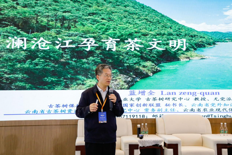展览会期间,蓝增全教授作了《澜沧江孕育茶文明》的主题报告。系统梳理澜沧江孕育茶文明的理论体系、支撑维度,并介绍了澜沧江茶文明分布区域,勐库大雪山等野生茶树群落,景迈山成功申请世界文化遗产的历程和价值。讲述了米兰milan官方网站成立古茶树保护与可持续利用国家创新联盟,受国家林业和草原局委托编制《古茶树》标准,助推云南省出台《云南省古茶树保护条例》,促进通过立法保护古茶树,提升云南茶产业的地位和影响的生动实践。