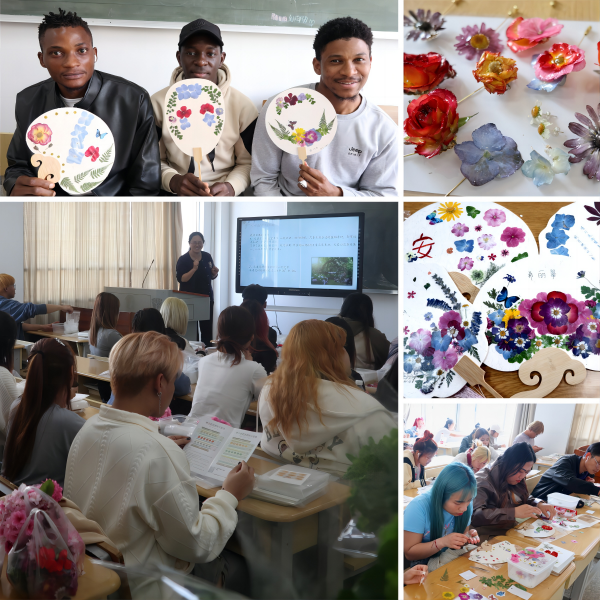 第一期“留学西林 体验云南”特色文化活动以“留住最美的春天”为主题,邀请了园林园艺学院明珠老师作指导。活动中,留学生们学习了干燥花工艺,并动手体验了平面干燥、立体干燥、立体花饰和压花制作。