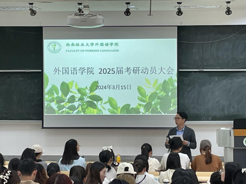 为帮助2025届学生明晰前进方向,3月15日,外国语学院组织召开2025届毕业生考研动员会,特别邀请弧力教育刘柏秋老师到场开讲并进行备考指导,200余名学生到场聆听讲座。