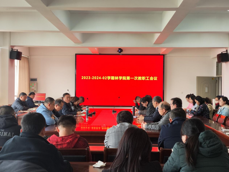 为保证新学期教学、科研、管理工作顺利开展,2月25日下午,林学院召开2023-2024学年第二学期教学、科研和安全工作会议。学院领导班子和全体教职工参加会议。会议由学院党委书记张大才主持。