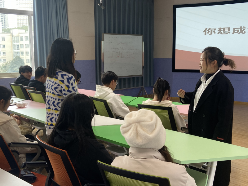 杨冬梅首先向同学们介绍了制定就业目标的重要性,并介绍当前就业形势,鼓励同学们要打开思路。她表示就业途径不应该仅局限于考公、考研、出国留学、入职国企,应该提早确定合理目标,尽早规划。她还向同学们介绍了简历的基本要素、制作简历的注意事项,以及面试时的职场礼仪,分析了结构化面试和无领导小组面试的区别。
