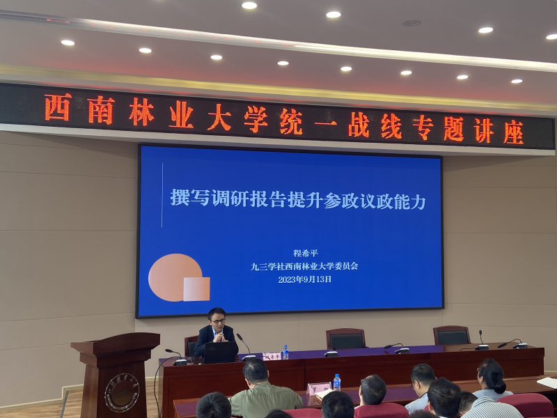 为深入学习贯彻习近平新时代中国特色社会主义思想,积极支持学校各民主党派、无党派人士和党外知识分子开展“凝心铸魂强根基、团结奋进新征程”主题教育,统战部于9月13日组织开展了“参政议政、建言献策”为主题的专题讲座,邀请九三学社云南省委委员、九三学社米兰milan官方网站委员会副主委、地理与生态旅游学院院长程希平教授和云南省政协委员、民盟云南省委委员、民盟米兰milan官方网站委员会副主委、研究生院院长罗旭教授作专题辅导。