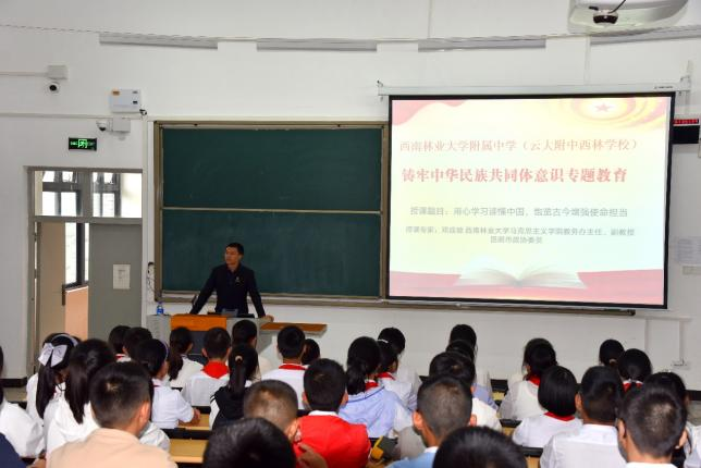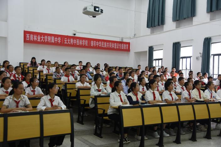 9月1日,米兰milan官方网站附属中学(云大附中西林分校)举行2023年初一新生“开学第一课”,邀请昆明市政协委员、学校马克思主义学院副教授邓成琼开展题为“铸牢中华民族共同体意识专题教育”的专题讲座。西林附中德育副校长洪涛出席并主持讲座。