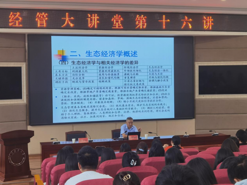 9月6日,中国社会科学院农村发展研究所原所长李周,应邀为经济管理学院“经管大讲堂”作题为“生态经济研究的回顾与展望”的学术讲座。副校长彭志远教授出席并主持讲座,学院教师和研究生100余人参加报告会。