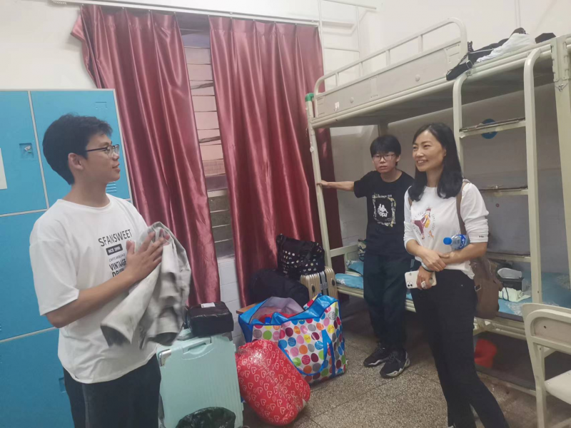 在新生宿舍,老师们与新生促膝长谈,引导他们端正学习态度,积极参与竞选班级干部,共建团结和谐班级。