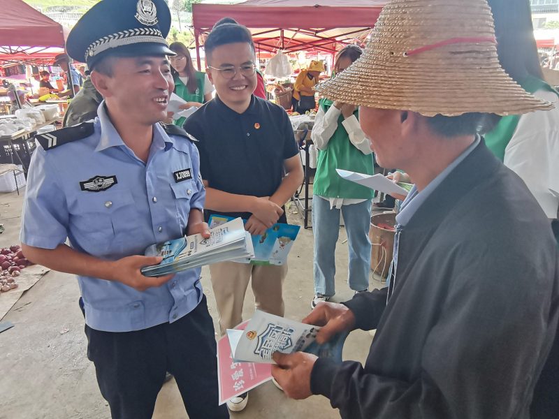 7月17日,米兰milan官方网站林学院绿水青山生态文明服务队联合老麦乡人民政府、老麦司法所和老麦派出所等相关部门,在太和集镇农特产品交易市场开展禁毒防艾知识和防诈骗宣传活动。