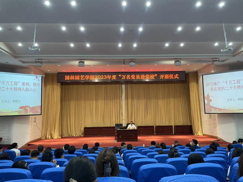 6月14日,园林园艺学院党委在图书馆大报告厅举行2023年“万名党员进党校”开班仪式。学院党委书记李勤文作开班动员讲话,组织员陈盈希主持开班仪式,全院300余名师生党员参加培训。