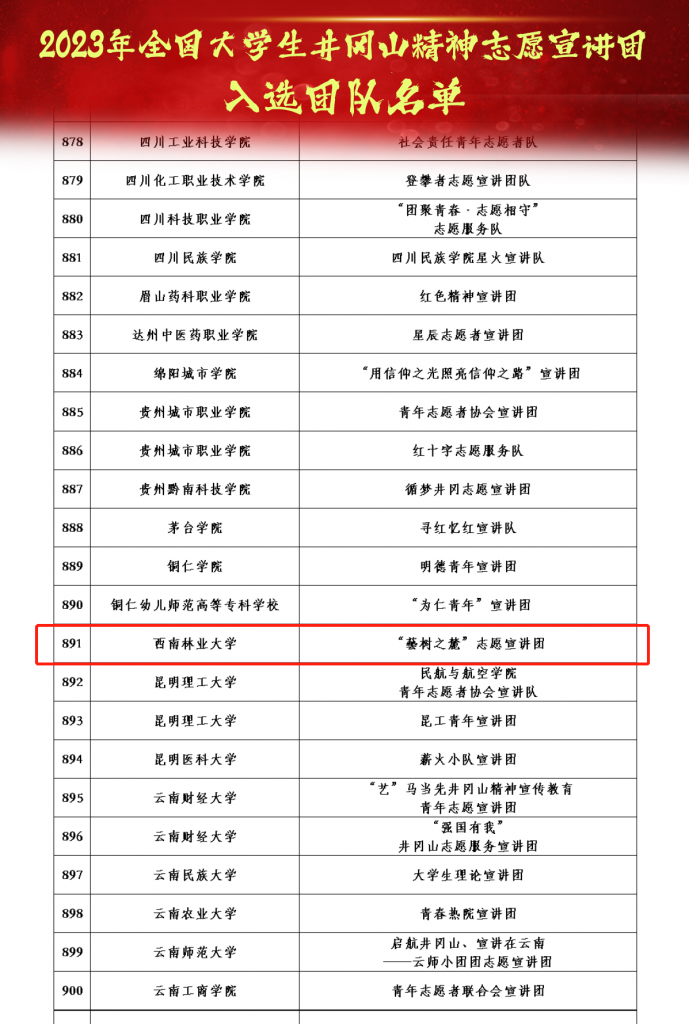 近日,团中央青年志愿者行动指导中心、全国青少年井冈山革命传统教育基地、井冈山管理局联合发布《2023年全国大学生井冈山精神志愿宣讲团入选团队名单》。米兰艺术与设计学院“藝树之麓”志愿宣讲团从全国650所高校的1615支团队中脱颖而出,成功入选。