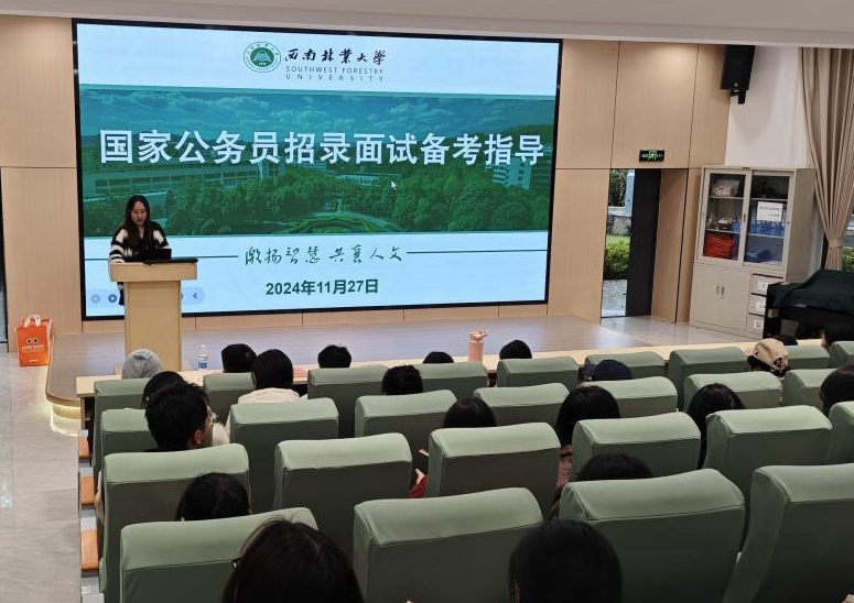 11月27日,文法学院举办“职有未来·创响西林”系列活动之国家公务员招录面试指导公益讲座。邀请省内公考面试讲师王芮为主讲。