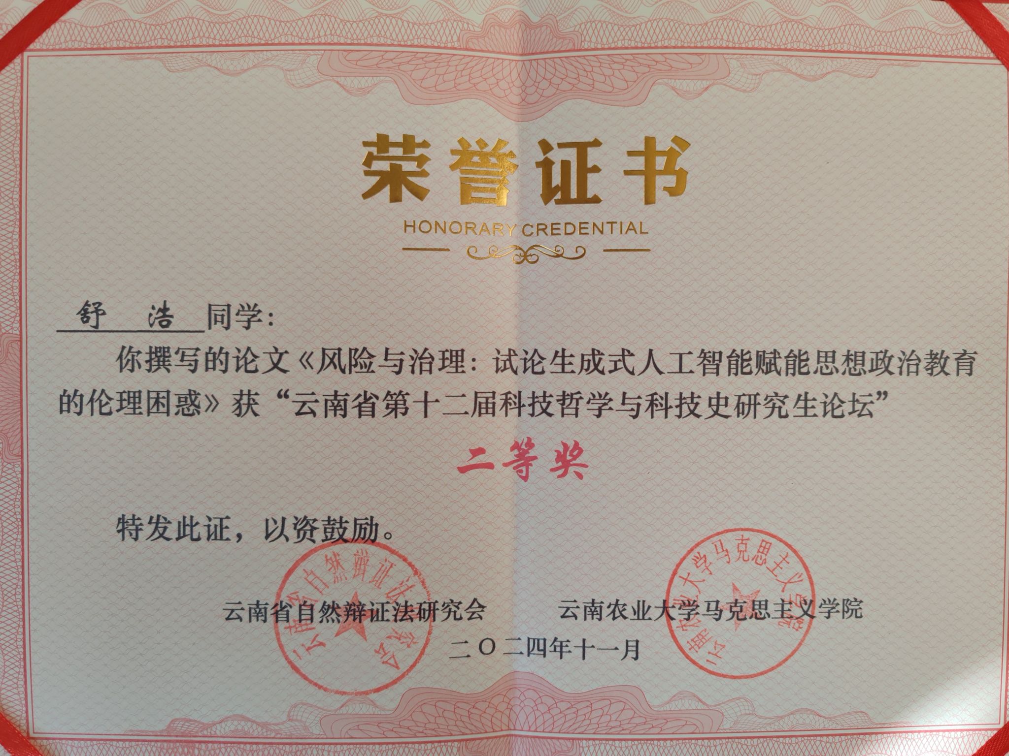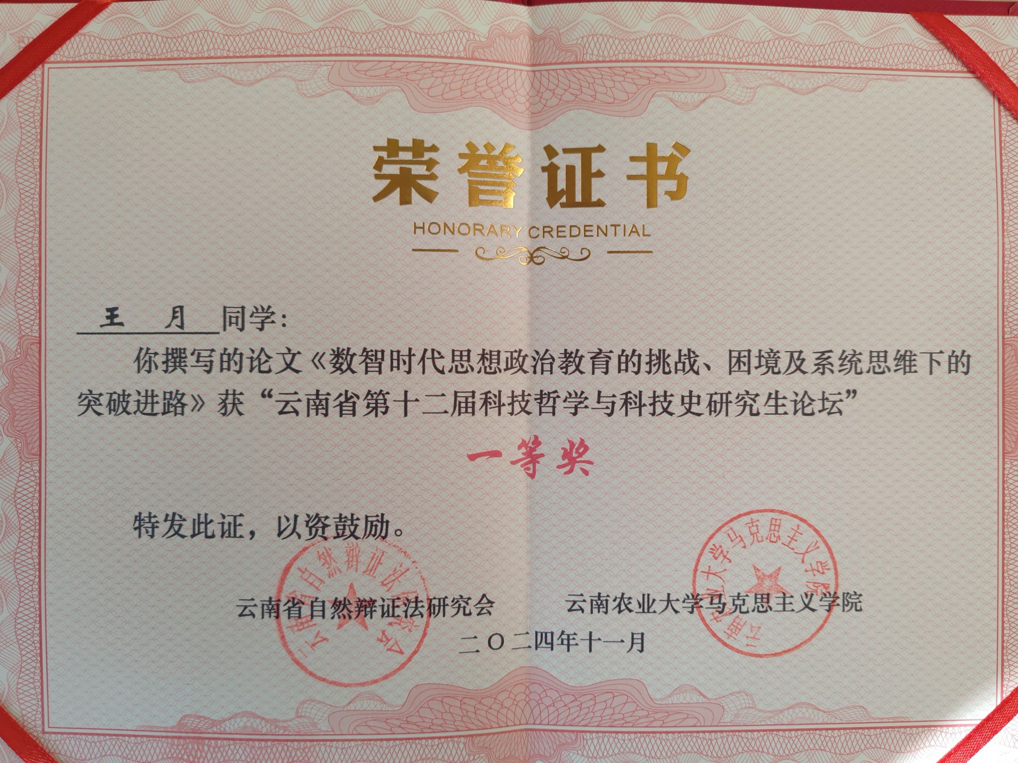 马克思主义理论专业2023级硕士研究生王月作题为《数智时代思想政治教育的挑战、困境及系统思维下的突破进路》的交流发言,得到了分会场相关专家的认可与指导。同时,在提交的学术论文中,米兰共有11名同学获奖,其中,有1名同学获一等奖,2名同学获二等奖,8名同学获三等奖。