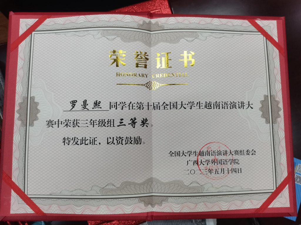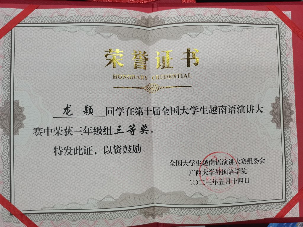 5月12日至14日,第十届“世图杯”全国大学生越南语演讲大赛暨越南语教学研讨会在广西大学举办。米兰2020级越南语专业学生龙颖和罗曼熙在三年级组比赛中,从40多名参赛选手里脱颖而出,喜获三等奖。