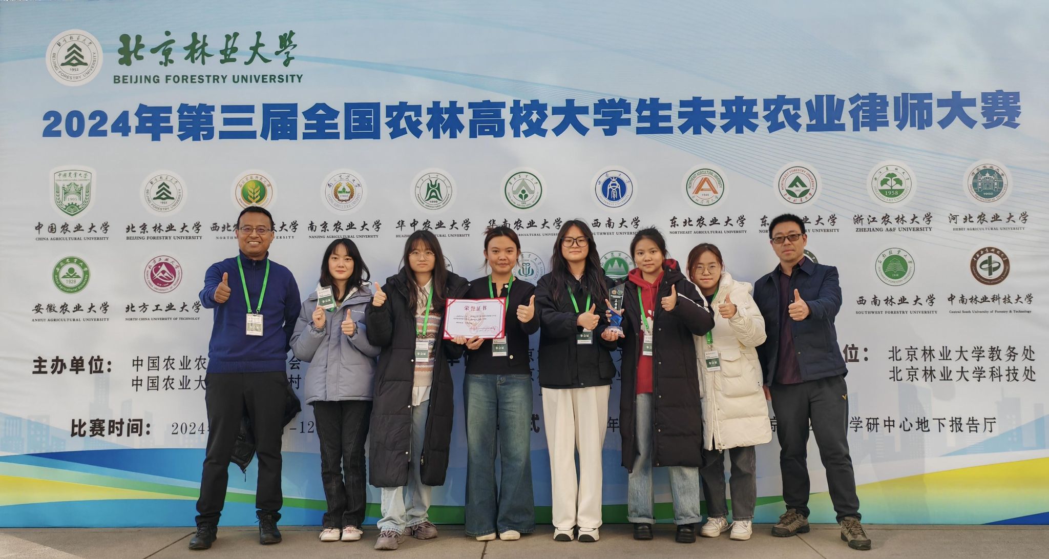 11月30日至12月1日,由中国农业农村法治研究会、中国农业大学农业与农村法制研究中心主办,北京林业大学承办的第三届全国大学生未来农业律师大赛在北京林业大学举行。米兰文法学院教师遴选出法学专业的邓美琳、孟柳余、刘媱、董国娟、杨思雨、任永双六位同学组成参赛队,由和博、张强两位老师担任指导教师,赴京比赛。