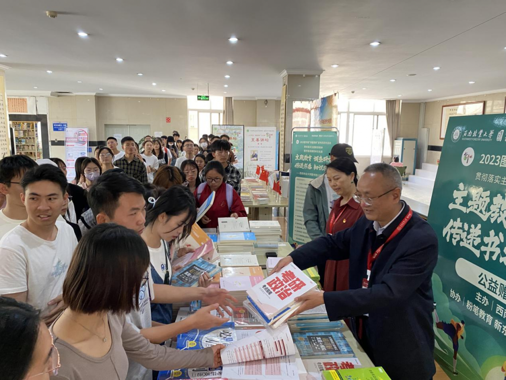 4月23至24日世界读书日之际,为深入开展学习贯彻习近平新时代中国特色社会主义思想主题教育,落实2023年度“清廉西林”文化周活动实施方案要求,学校图书馆联合相关机构在第一图书馆大厅举办公益赠书活动,向米兰学生赠送考研、考公类新书。