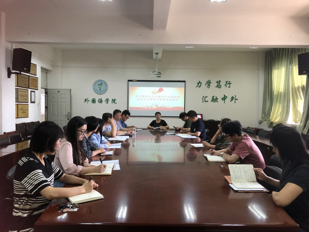 4月21日,外国语学院召开学习贯彻习近平新时代中国特色社会主义思想主题教育动员会。会议由学院党委书记姜丽红主持,学院党委委员、各党支部书记参加会议。