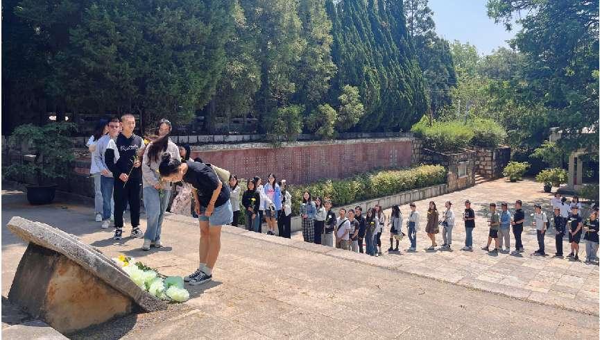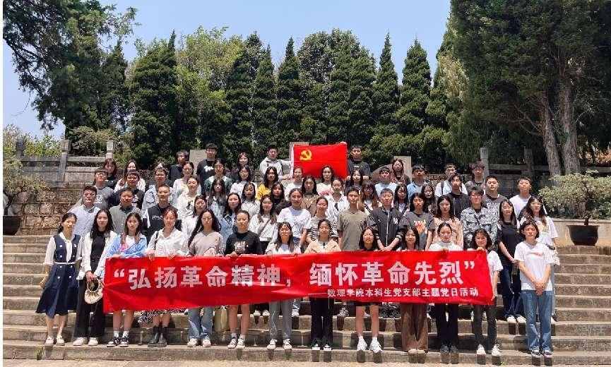 4月17日,数理学院本科生党支部到黑龙潭革命烈士陵园开展“弘扬革命精神,缅怀革命先烈”主题党日活动。全体学生党员重温入党誓词,学院党委书记李军领誓。