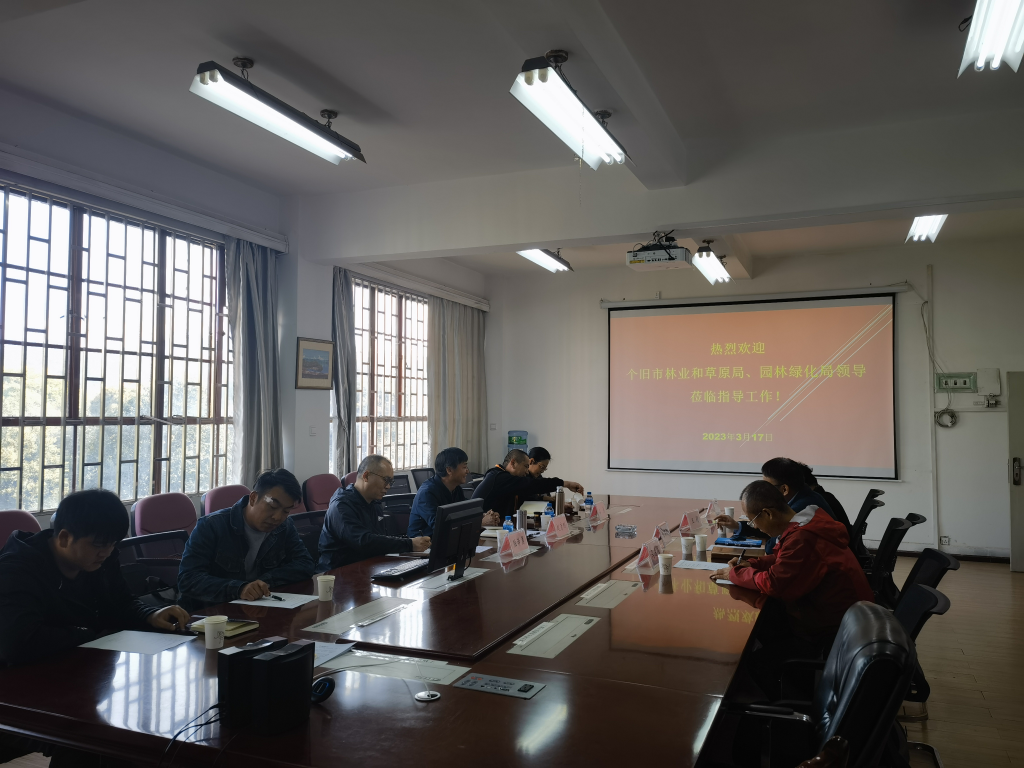 3月17日,个旧市林业和草原局、园林绿化局及白云山国有林场相关领导一行6人到米兰地理与生态旅游学院就个旧市人工岛生态修复项目及生态旅游与森林康养等事项进行咨询交流。地理与生态旅游学院院长程希平,教师代表马月伟、姬永杰及绿色发展研究院王娟教授参加座谈。