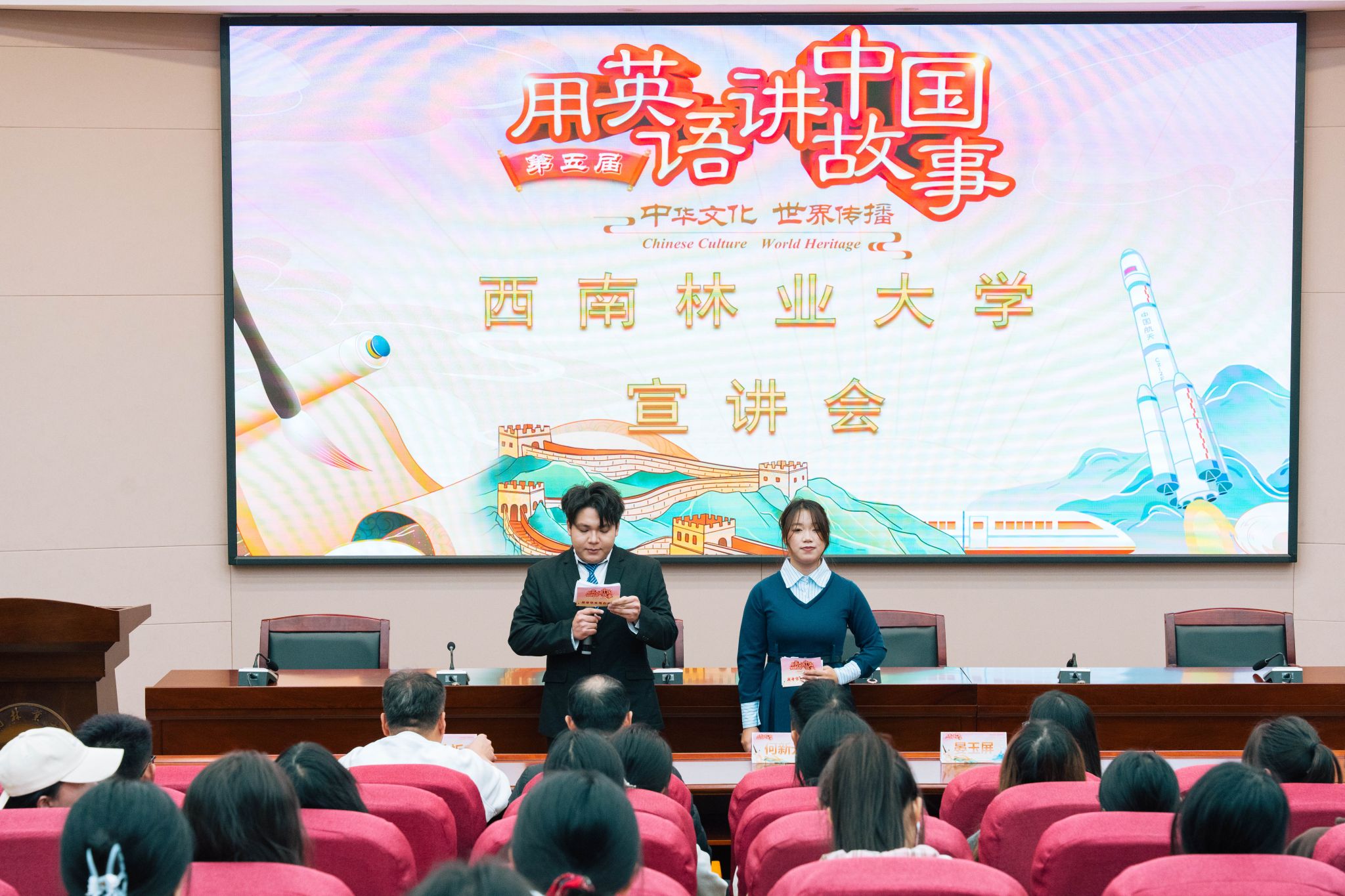 12月10日晚,米兰在立德楼二楼报告厅举办第五届“用英语讲中国故事大会”宣讲会。该赛事昆明选区总指挥覃智勇、执行秘书长林德祈、外国语学院(国际学院)院长何新元以及来自全校各专业的参赛选手参加宣讲会。