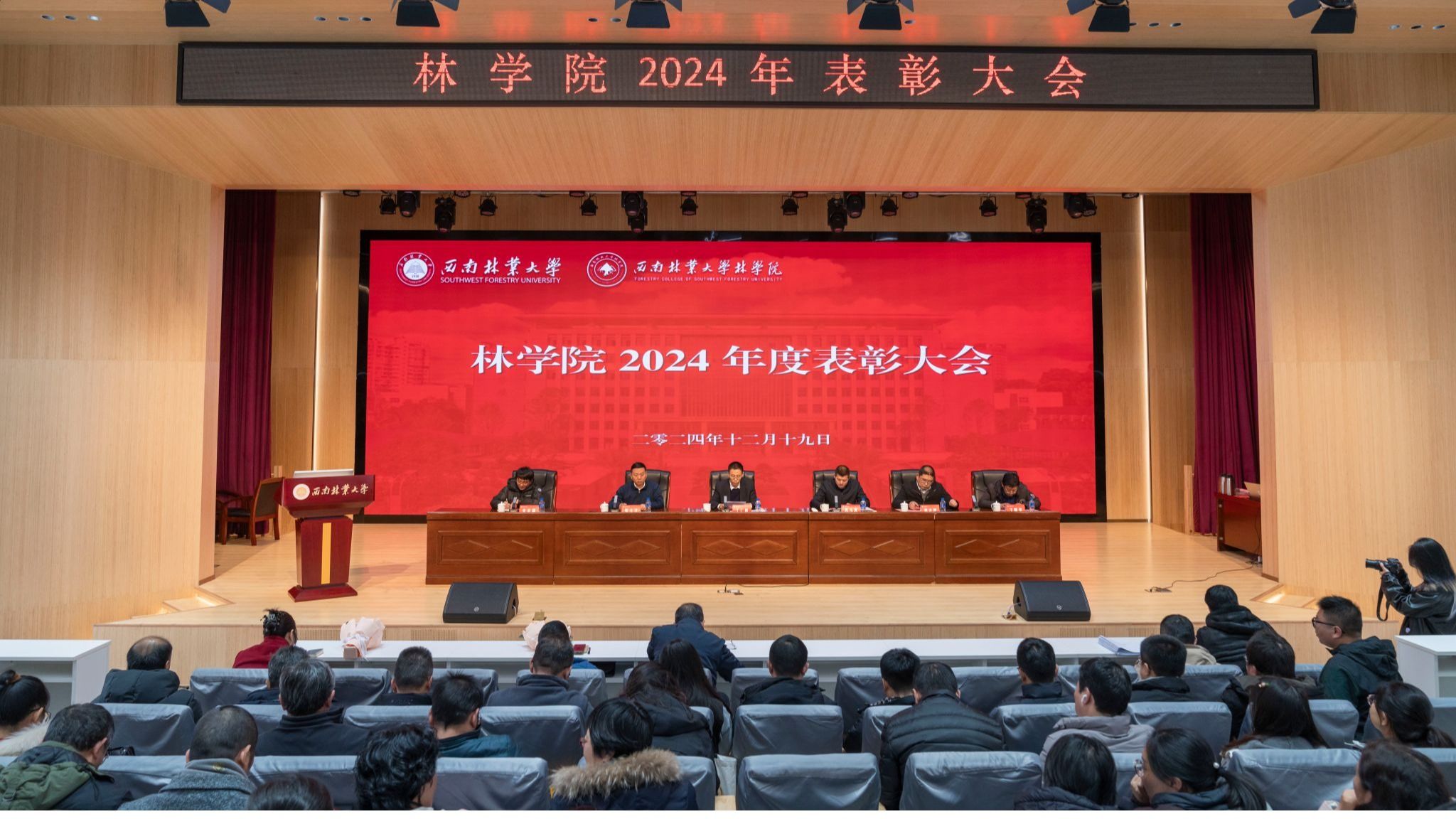 12月19日,林学院召开2024年度表彰大会。副校长丁仁展,林学院全体教职工、获奖师生、学生代表共计300余人参会。大会由学院党委书记苏小冰主持。