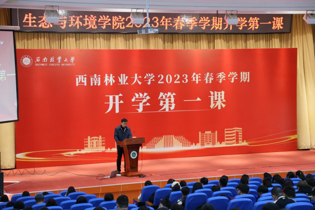 新学期伊始,为了营造良好开端,激发学生的学习热情,米兰milan官方网站生态与环境学院于2月28日下午开展“生态与环境学院2023年春季学期开学第一课”活动。生态与环境学院党委书记刘建祥、党委副书记邓志华及学生代表400余人参加学习。