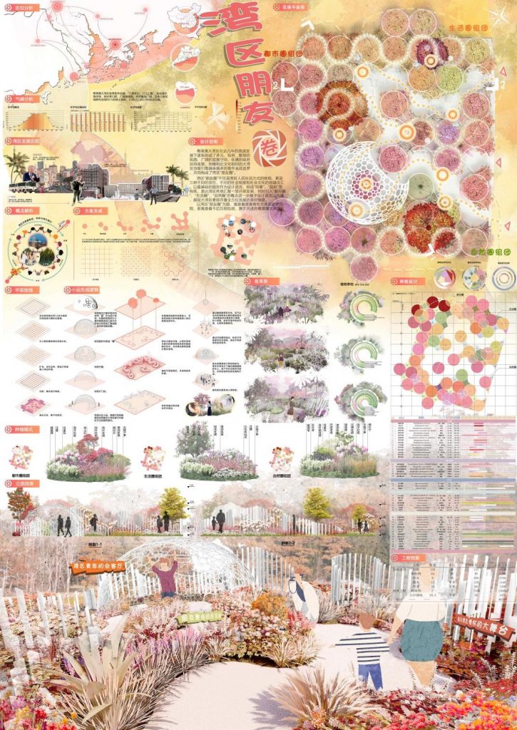 今日,2023粤港澳大湾区花展大学生花园设计竞赛(2023 Guangdong-Hong Kong-Macao Greater Bay Area Flower Show Student Garden Design Competition)举办了线上终评会。我院风景园林系硕士研究生汪聪谨、罗聘杰、夏纯蔚、李雯萱合作完成,宋钰红教授、张龙老师指导的设计方案“湾区朋友圈”获得设计竞赛大奖。