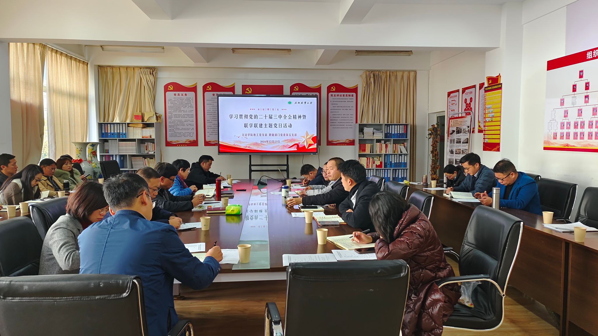 12月23日,文法学院教工党支部与学校职能部门党委第五支部联合开展“学习党的二十届三中全会精神”主题党日活动,校纪委书记武红星、两个支部的全体党员参加。活动由文法学院党委书记杨欣主持。