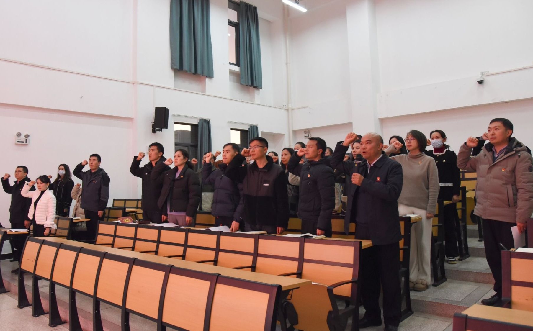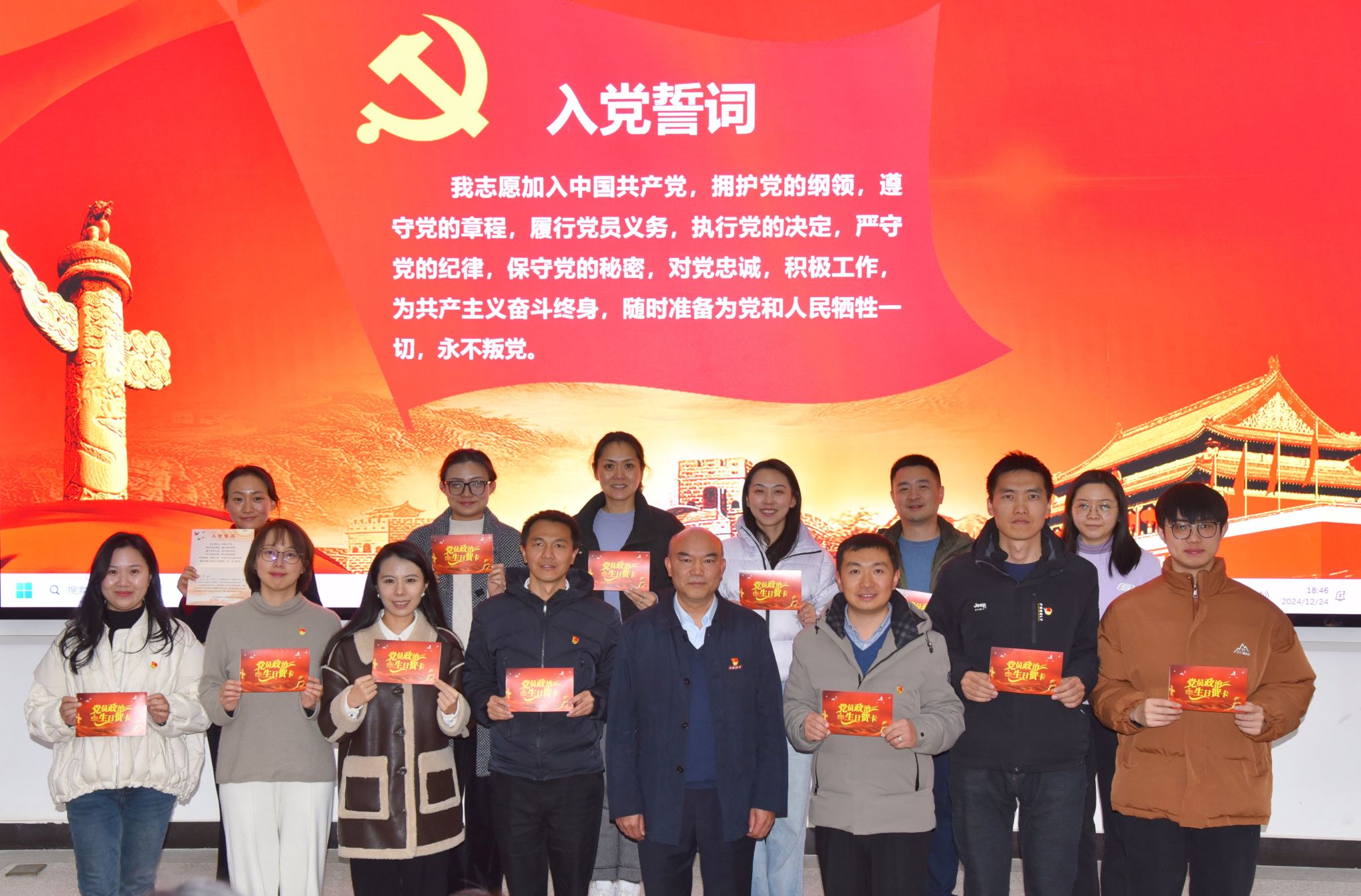 会上,西林附中党总支向过政治生日的13位党员赠送政治生日贺卡,全体党员重温入党誓词。