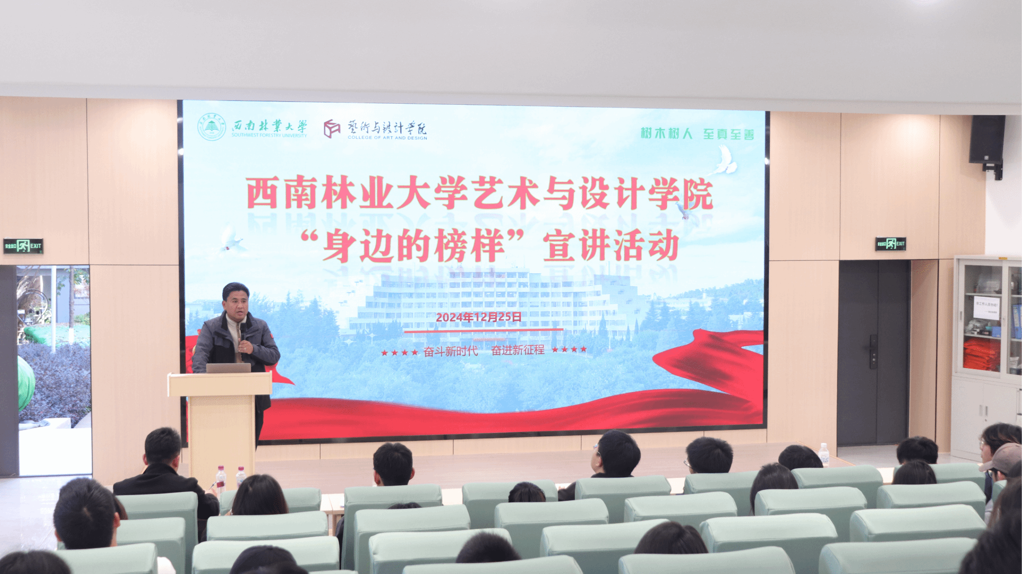 12月25日,艺术与设计学院(艺术博物馆)“身边的榜样”宣讲会在立德楼一楼报告厅举行。本次宣讲活动分别由荣获米兰2023年和2024年“大学生年度人物”的环境设计专业2021级学生夏于桐、视觉传达设计专业2021级学生马云赫主讲。学院团学工作负责人以及100余名学生参加宣讲会。学院党委副书记李浩主持会议。