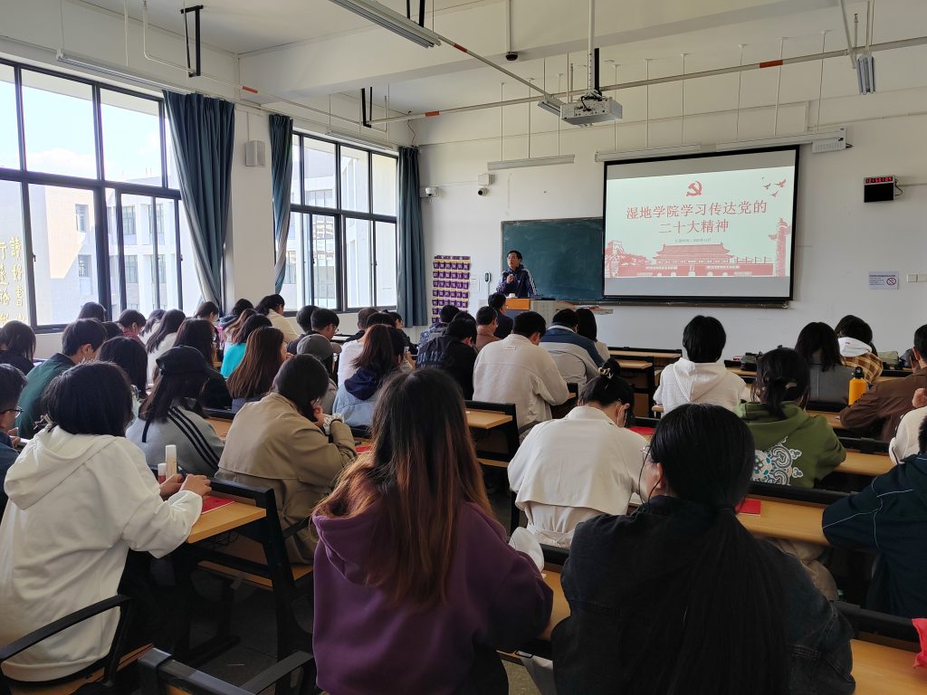 为号召学院广大党员师生自觉把思想和行动统一到党的二十大精神上来,11月9日,湿地学院召开党员大会,学院党委书记彭建松领学党的二十大精神。