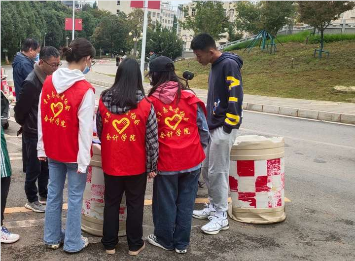 为深化平安、安全校园建设,保障广大师生安全,增强学生交通安全理念,会计学院和学校保卫处在交通疏导点开展“行车走路有秩序,交通安全有保障”为主题的交通安全志愿服务活动。