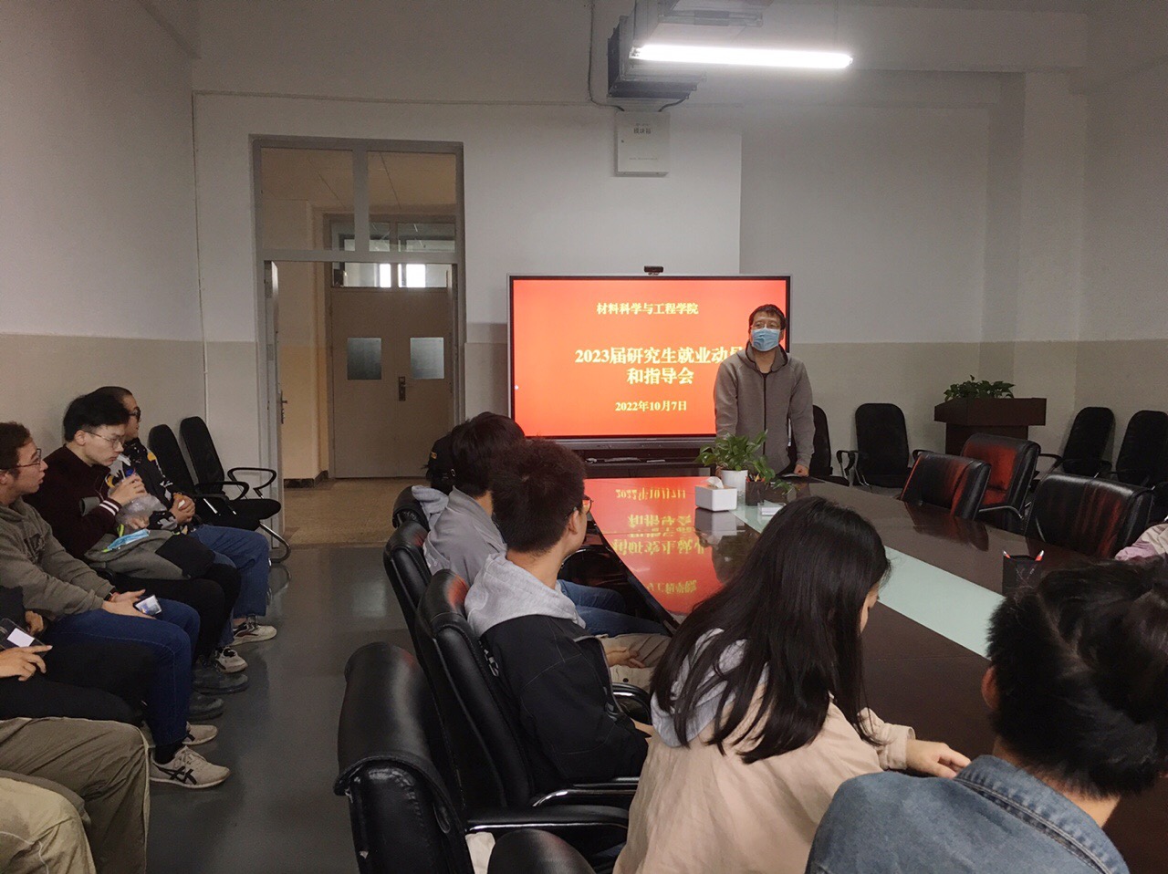 此次就业指导和动员会在秋季招聘的关键时期召开,对提高学院研究生的就业积极性,引导学生积极求职、理性定位起到了积极作用。材料科学与工程学院将以本次就业动员和指导会的召开为契机,分类指导、精准施策,努力推进2023届毕业生就业工作。(来源:材料科学与工程学院/文/图:王兆燕/审核:孙浩/责任编辑:朱皓天)