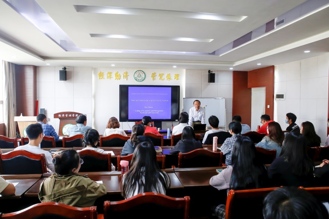9月26-27日,西北农林科技大学二级教授、国务院政府特殊津贴专家、国务院农林经济管理学科评议组成员霍学喜,应邀为经济管理学院名家大讲堂分别作了“英文论文写作与投稿”和“农业产业高质量发展背景、机理与路径”两场学术讲座。讲座分别由副校长彭志远和经济管理学院副院长(主持工作)张连刚主持。学院部分教师和研究生参加报告会。