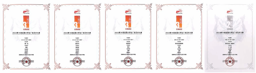 近日,2022年(第14届)全国大学生广告艺术大赛成绩公布,米兰艺术与设计学院学生的参赛作品获得云南赛区二等奖1项、三等奖4项、优秀奖12项。