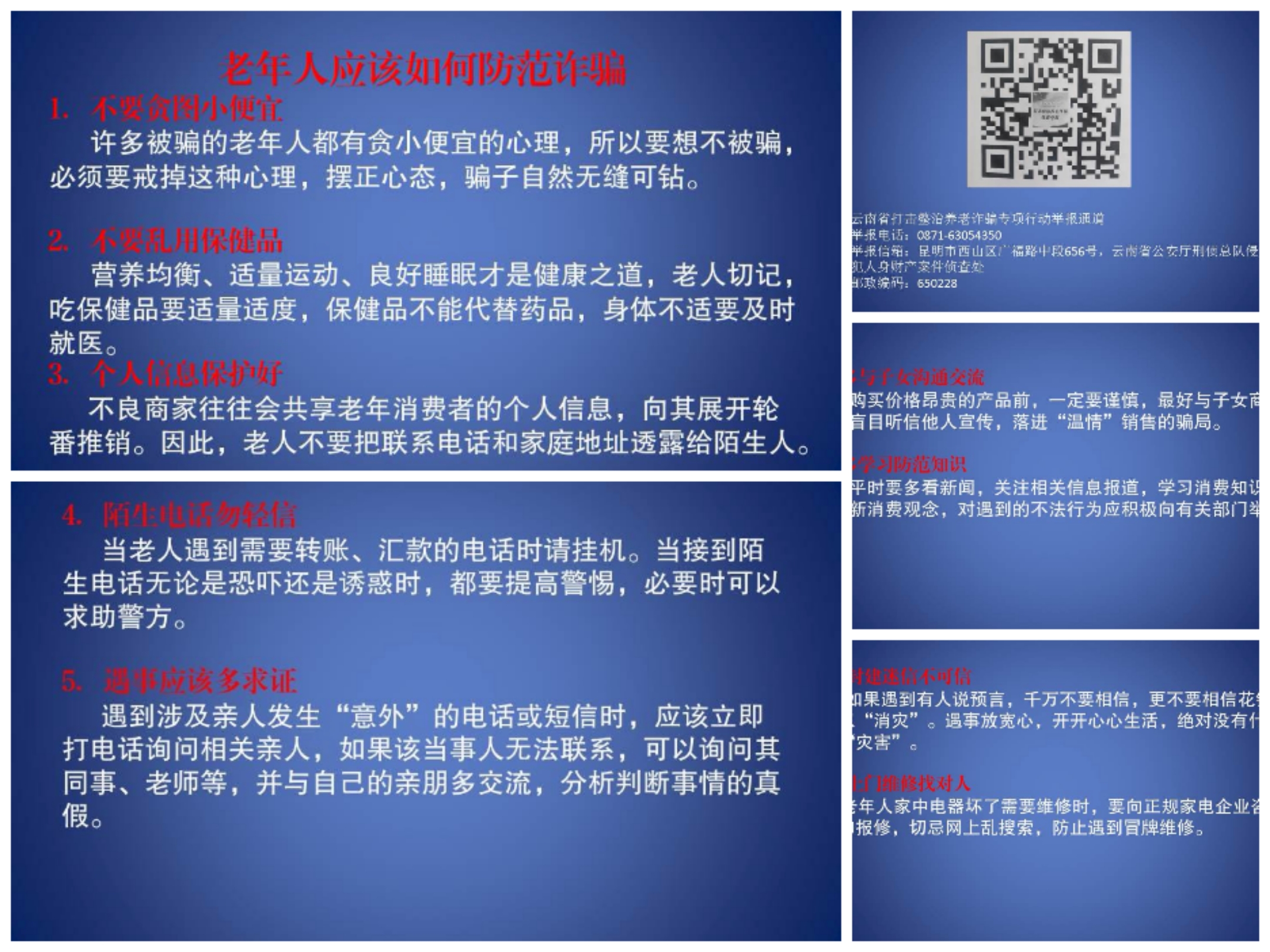 9月5-9日,离退休工作处利用钉钉、讲座、宣传栏等多种形式开展防范养老诈骗宣传活动,帮助老年人识别、远离养老诈骗骗局,筑牢防范养老诈骗防线,牢牢守住养老“钱袋子”。