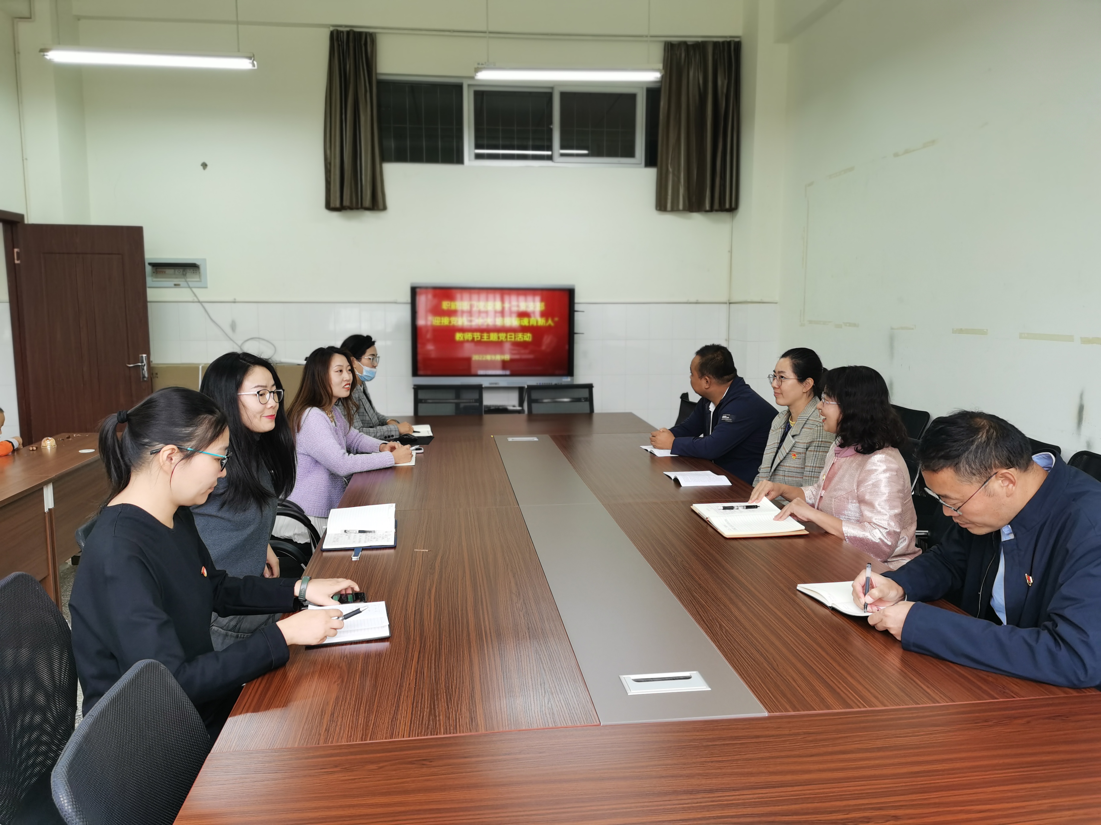 为切实做好教师节庆祝工作,积极营造尊师重教的浓厚氛围,9月9日,职能部门党委第十二支部召开“迎接党的二十大,培根铸魂育新人”主题党日活动。职能部门党委书记韩洁以及职能部门党委第十二支部全体党员参加活动,活动由支部书记张保兰主持。