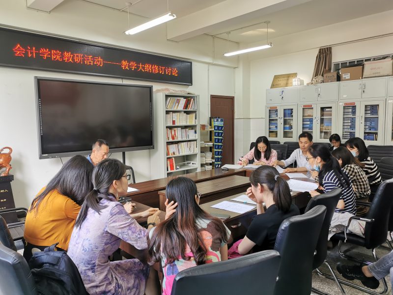7月4日,会计学院会计系和财务管理系专任教师联合举行教学大纲修订讨论的教研活动。此次教研活动由会计系主任钟美老师主持。