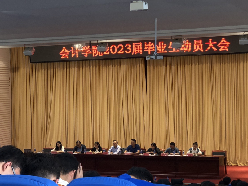 6月30日下午,会计学院在校图书馆大报告厅召开了2023届毕业生就业动员大会。院长杨洪涛、党委副书记(主持工作)刘兴东、副院长李谦、党委副书记赵芬、就业市场科科长傅晓鹏、学院就业联络员杨智超,以及会计学院全体辅导员、2023届毕业班班主任和学院教学管理人员参加会议。会议由学院党委副书记赵芬主持。