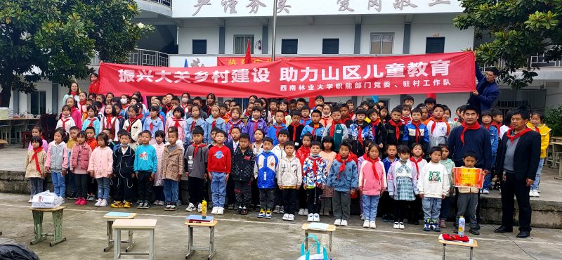 百年小学地处云南高寒少数民族山区,四周大山环绕,交通不便、教育设施简陋,全校共25名学生,只有一位代课老师,是米兰驻村定点帮扶学校之一。自2021年以来,职能部门党委一直通过教育扶贫持续帮扶学校定点帮扶地——大关县木杆镇,组织全体党员同志为孩子们捐款献出一份爱心,相继向漂坝村584名小学生捐助爱心彩色画笔,向大关县复兴中学家庭困难学生李浩宇进行捐款帮扶。此次,在六一国际儿童节到来之际,职能部门党委和驻村工作队的同志们再次向大关县小朋友送上礼物,给孩子们捐赠了书包和文具,带去了六一的祝福和温暖。