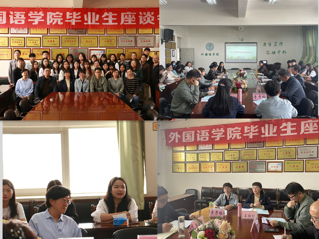 外国语学院于5月20日召开2022届毕业生座谈会。党委书记姜丽红、院长李秀梅、党委副书记李法营、副院长饶耀平、学工办主任、团委书记、各专业负责人及20余名学生代表参加会议。